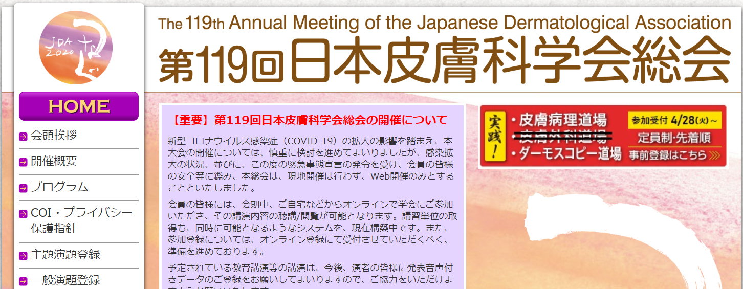 6月4日~7日まで、第119回日本皮膚科学会総会がweb限定で開催されました(本来は京都国際会館で開催予定でした)。6月7日が休日当番日でしたので、4日と5日を代休として、私と副院長もweb参加しました。
